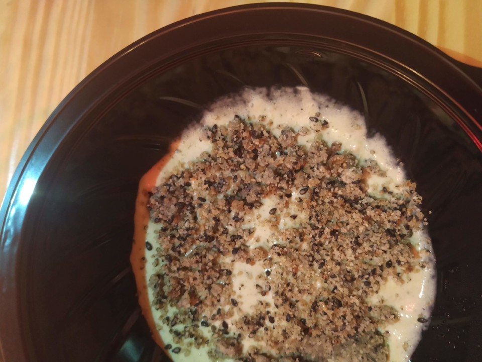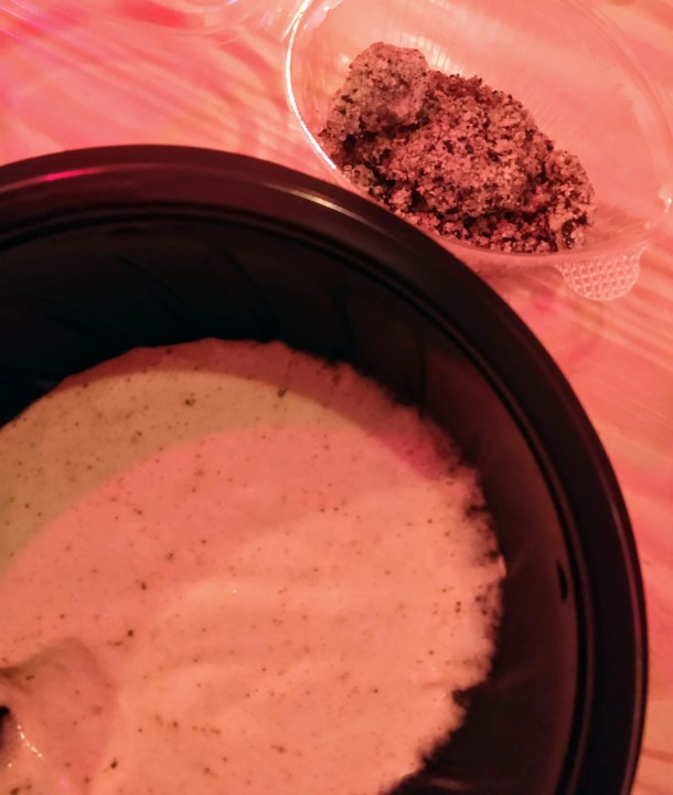 Por fim, e enganem-se se acham que tínhamos mais espaço para sobremesa (20 dumplings para 2 pessoas é um exagero, mas quem nos mandou ser bestas hum?), experimentámos a mousse de matcha que estava DI-VI-NAL. Aquele crocante de sésamo é a cereja perfeita em cima deste "bolo", doce sem ser doce, uma cremosidade que não estava à espera. (Perdoem-me as fotos da sobremesa, mas entusiasmei-me, mandei-lhe uma colherada mesmo à besta antes de tirar foto e tentei remediar depois... não ficou nada decente!)